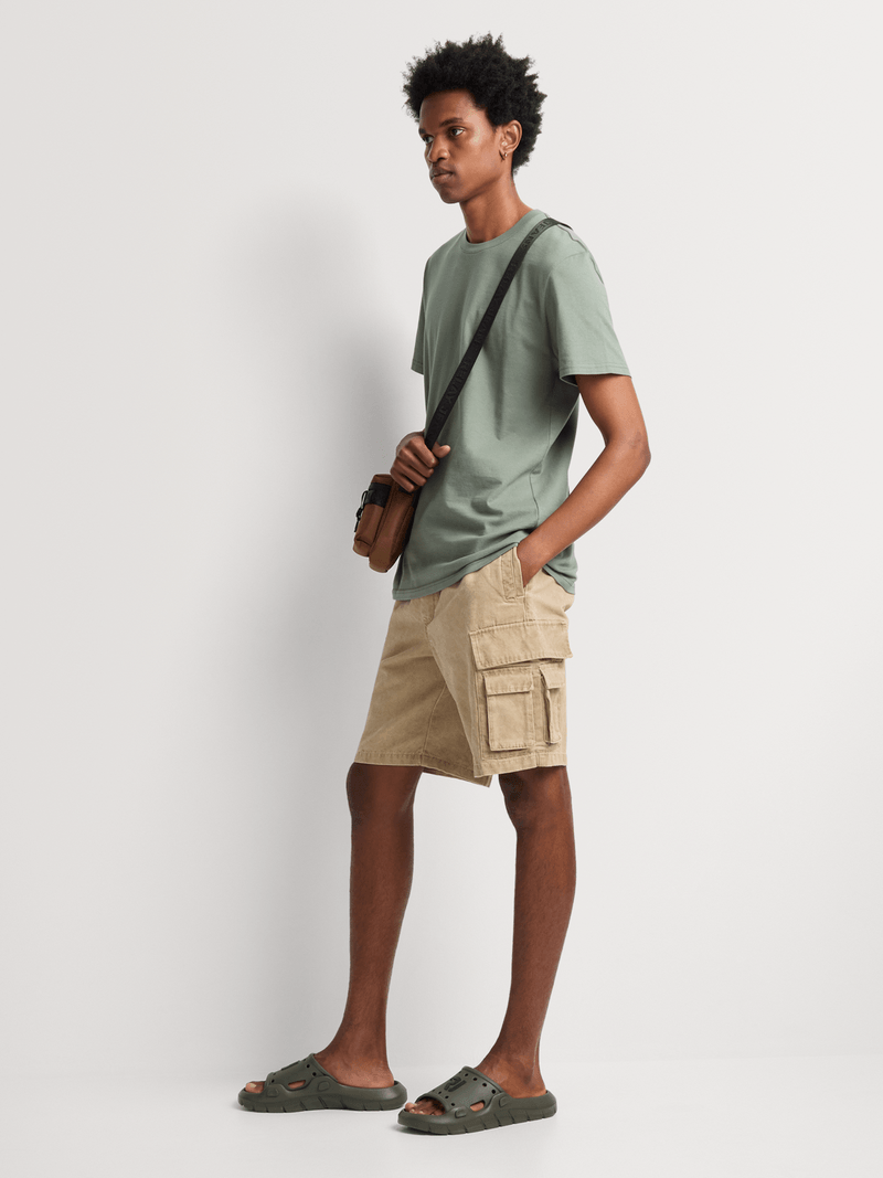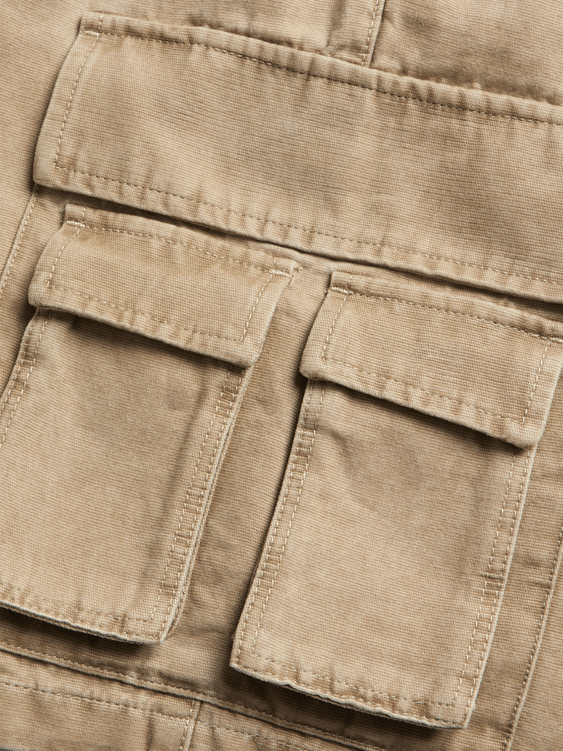The Markham men's washed utility Bermuda cargo shorts in stone are perfect for everyday wear. Made from cotton, they feature a regular fit for comfort. Easy to care for with warm wash, cool iron, dry cleanable. Enjoy the convenience and style these shorts offer.