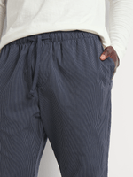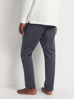 Stay stylish and comfortable in these Markham Men's Woven Navy Pyjama Pants. Designed for restful nights and easy lounging, these pants feature a soft, woven fabric with a timeless pinstripe pattern. The elasticated waistband with a drawstring ensures a secure and customizable fit, offering all-day comfort and a touch of style.
