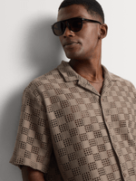 Bring effortless texture and modern ease to your wardrobe with the Markham Men’s Boxy Fit Square Taupe Crochet Shirt. Designed in a relaxed boxy silhouette, it delivers a contemporary drape that feels polished yet laid-back. The square-pattern crochet adds standout dimension, while the taupe colourway keeps the look warm, versatile, and elevated. Lightweight and breathable, it’s the perfect statement shirt for warm days, coastal plans, or easy, stylish layering over a vest or tank.
