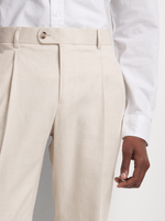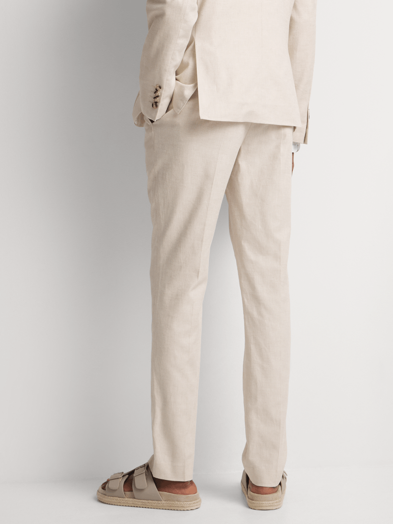 The Markham Mens Slimfit Cotton Linen Blend Trouser in Natural are perfect for a polished yet relaxed look. With a tailored slim fit, these trousers feature a versatile, natural hue that pairs well with multiple outfits. Impeccably constructed with a breathable cotton-linen blend.