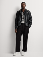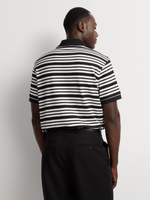 A refined everyday essential with modern striped detail. This regular fit black and milk golfer is crafted from single jersey fabrication for lightweight comfort and a clean finish.