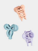 Get your hands on this fun and colorful 3-pack of hair clips in shades of purple, blue, and orange. Perfect for adding a pop of color to her hairdo. Versatile and easy to use. Great for everyday wear or special occasions.