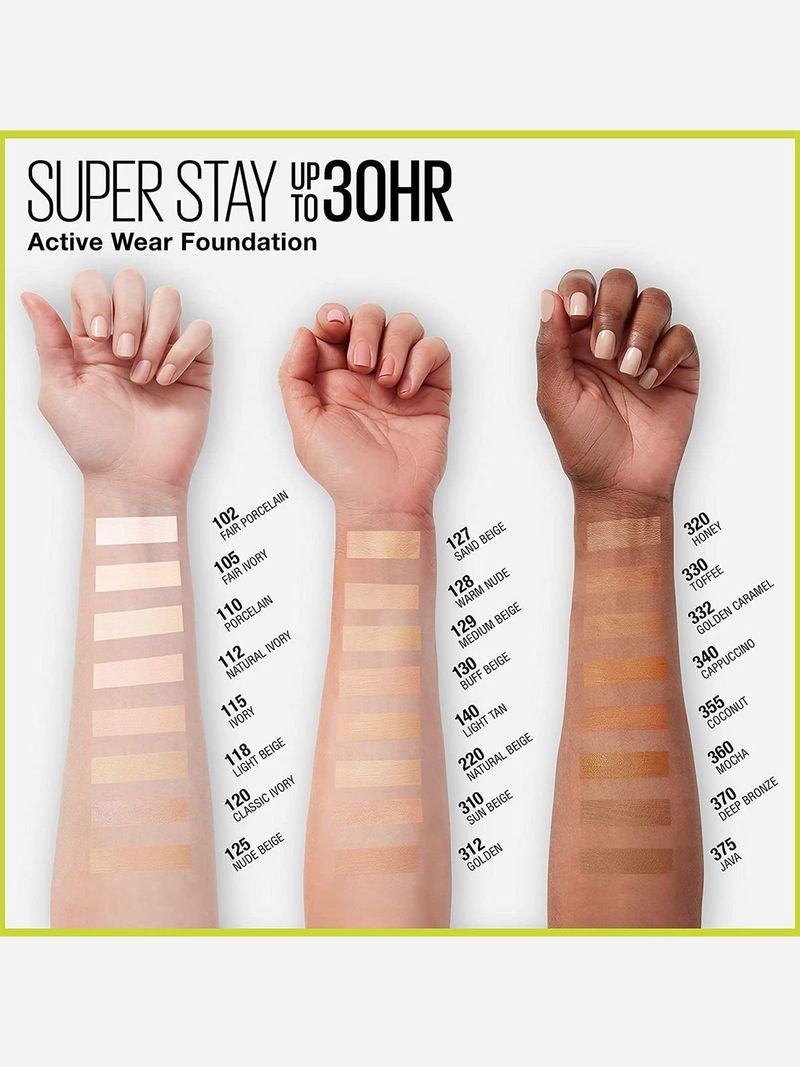 Full coverage, lightweight foundation with 30-hour wear, Water, sweat and transfer resistant