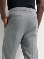 Elevate your style with our Markham Slim Tapered Houndstooth Grey Trouser. Crafted from premium PV stretch fabric for all-day comfort. Featuring a tapered fit, this trouser is perfect for any occasion. Made in South Africa and easy to care for with cool ironing and dry cleaning. Designed for versatility and style.