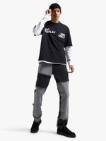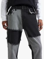 Home/Men/Clothing/Jeans/Men's Black Panel Patch Straight Leg Jeans