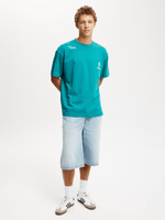 - Slouchy shoulder and extended sleeve length