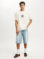 - Slouchy shoulder and extended sleeve length