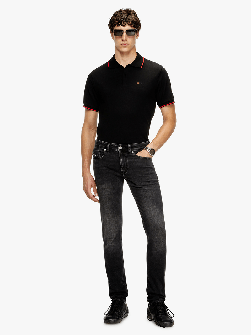 Elevate your style with these sleek Diesel Black 1979 Sleenker L.32 Trousers. Crafted from premium denim, they offer a cool wash for easy care. Perfect for any occasion, these trousers are designed without ironing or dry cleaning needed. Made in Egypt, they are a must-have addition to your wardrobe. Turn heads with these on-trend trousers while staying comfortable all day.