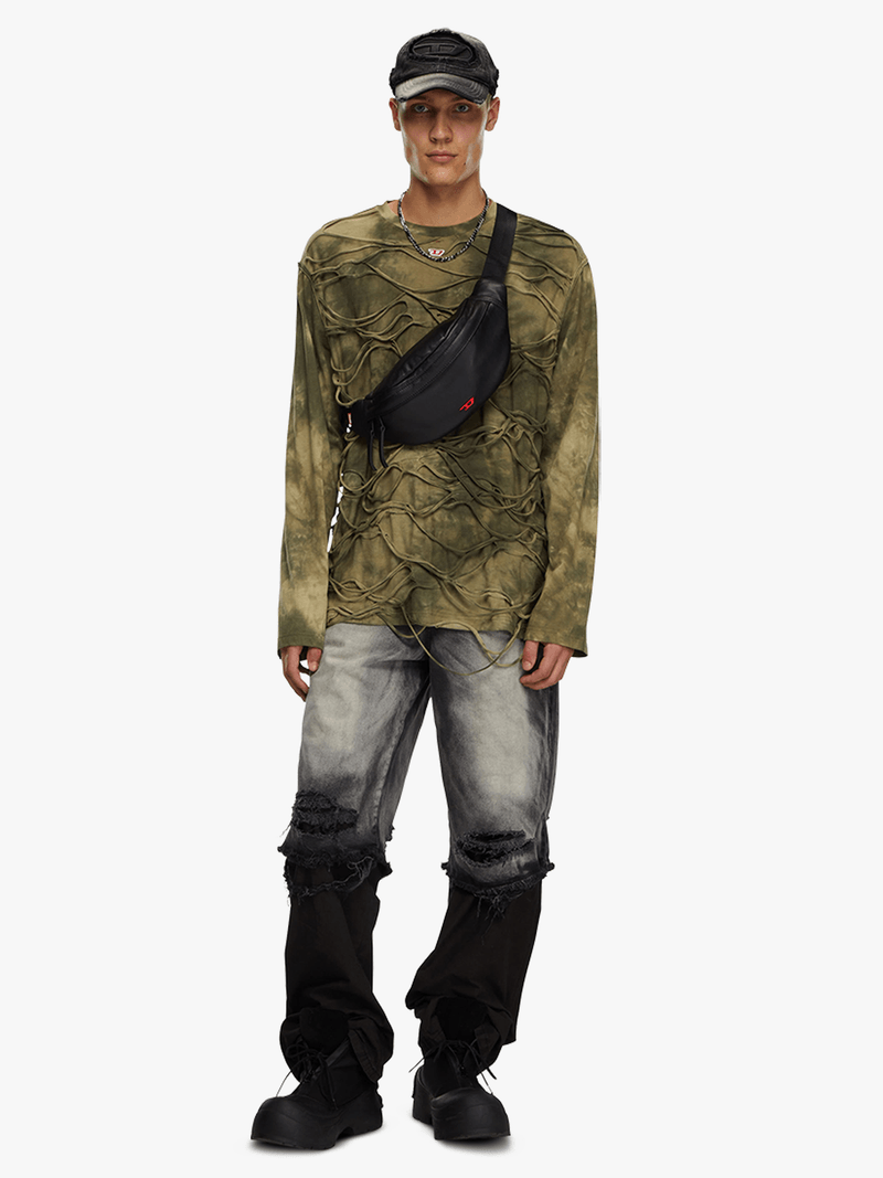 Featuring an embossed D logo, this men's bum bag is crafted from black leather with a buttery soft handle. It has a mesh back and an adjustable buckled strap and can be carried over the shoulder like a sling bag.