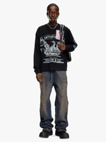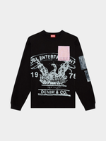 Styled with a relaxed fit, this men's long-sleeve tee is made from raw-effect cotton with a vintage look. Featuring a maxi archival print on the front in a faded finish, it's topped with transfer-print patches with raw-cut edges and frayed threads.