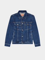 Denim trucker jacket, cut for a regular fit and subtly embellished with a red embroidered D logo.