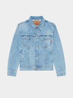 Denim trucker jacket, cut for a regular fit and subtly embellished with a red embroidered D logo.