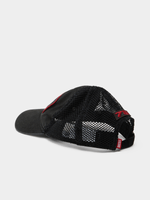 The contrast of fishnet mesh and cotton gabardine add a dynamic feel to this men's baseball cap. Patch details echo a laid back aesthetic.