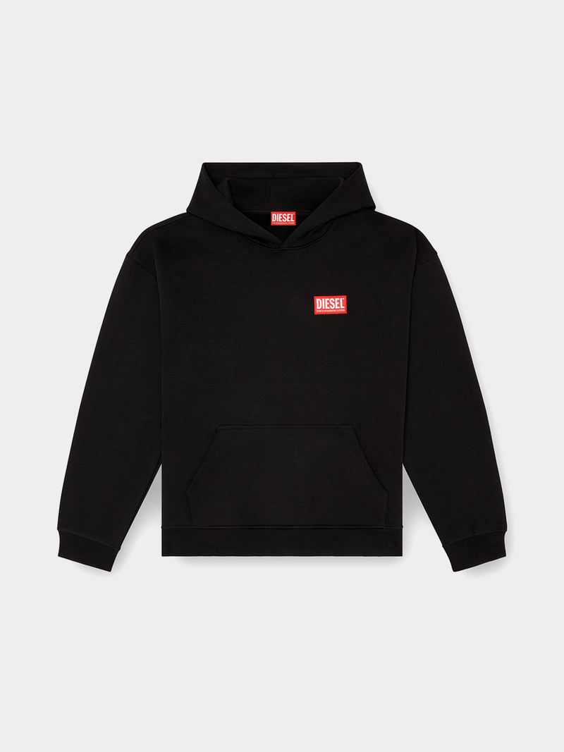 This men's relaxed-fit hooded sweatshirt is built from loopback jersey, spun from certified organic cotton. Branded with a classic red Diesel label on the left chest.