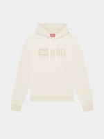Men's hooded sweatshirt made from organic cotton. Designed for a regular fit, this style has been treated to create a lived-in fade, as if it has been exposed to sunlight. The faint and smudged logo only furthers its worn-in appeal.