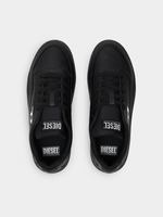 Men's low top sneaker made of soft calfskin leather with avant garde details. The nineties inspired upper has a classic silhouette, with contrasting Diesel logos on the tongue at the side. The chunky rubber sole has a custom tread.