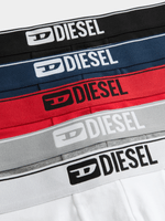 Five-pack of men's boxer briefs in soft stretch cotton. Each pair has a classic black hue and a matching waistband with a contrasting Diesel logo.