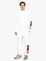 Long-sleeve sweatshirt with a crew neckline and relaxed fit. Made from unbrushed fleece in organic cotton, with a ribbed collar and lower hem for optimal comfort. Featuring the iconic Diesel Denim Division logo patch embroidered on the left sleeve, this sweatshirt represents the perfect blend of style and practicality.