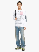 Styled with a relaxed fit, this men's long-sleeve tee is made from raw-effect cotton with a vintage look. Featuring a maxi archival print on the front in a faded finish, it's topped with transfer-print patches with raw-cut edges and frayed threads.