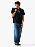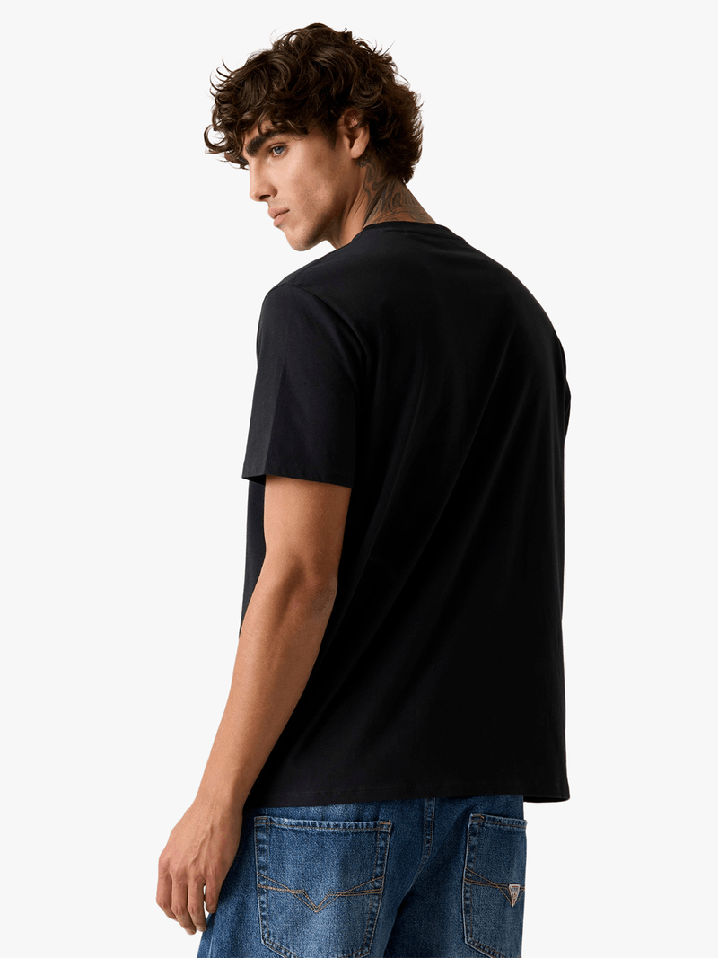 Elevate your casual look with the Men's Guess Black Basic Quattro G T-Shirt. Made from a blend of organic cotton and cotton, this tee offers unparalleled comfort. It features the iconic Guess Quattro G logo, cool wash instructions, and a relaxed fit. Say goodbye to boring basics!