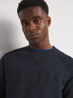 Stay comfy and stylish in this Blue Aldwin Crew Neck Sweatshirt by Guess. Made from a cozy cotton blend, it features a classic crew neck design. Easy to care for with cool wash and warm iron instructions. Perfect for everyday wear. Crafted for comfort and durability.