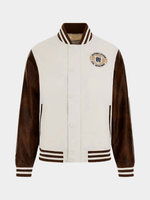 Elevate your style with the Guess Sand Varsity Bomber Jacket. Made of 100% polyester, this jacket features a classic bomber style with long sleeves and a regular fit. Easy to care for with cool wash instructions. Made for those who appreciate quality and comfort. Add this versatile piece to your wardrobe today!