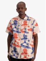 Surf Time shirt is perfect for when the waves are looking good. Featuring an all over graphic of a surfing watch dude in blue and red. Featuring a camp collar this loose fit shirt is made in Africa with 110g 100% Cotton Poplin fabric. The shirt features a slice of African wisdom hidden on the inside of the button placket.
