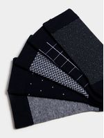 This MKM Sock 5 Pack includes 5 pairs of cotton-rich socks in a mix of patterns in shades of navy and white. These basic socks are ideal for every day and offer a lightweight choice that works with everything from formal office footwear to casual sneakers.