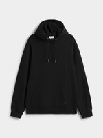 Stay cozy in our Markham Basic Black Hoodie. Made from soft brushed fleece, this regular fit hoodie is perfect for cool washes. Features cool washability, warm ironing capability, and easy dry cleaning. Crafted from cotton and fleece.