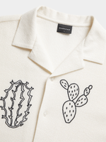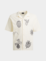 Elevate your style with our Markham button-through shirt. Made from textured crepe with intricate embroidery, this shirt is perfect for any occasion. Cool wash, warm iron, and dry cleanable for easy care.