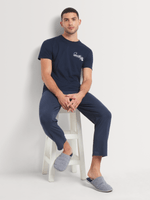 Stay cozy in our navy crew sleepwear top. Made from soft cotton for ultimate comfort. Features a classic crew neckline and relaxed fit. Easy to care for with cool wash, warm iron, and dry cleanable instructions. Locally made in South Africa. Perfect for lounging or sleeping.