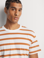 Stay cool and stylish in this Markham Horizontal Stripe T-Shirt. Made from comfortable cotton, this t-shirt is perfect for any casual occasion. Features include a trendy rust and milk horizontal stripe design, crafted in South Africa. Easy to care for with cool wash, warm iron, and dry cleanable instructions.