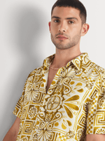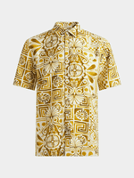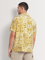 Stay stylish with the Markham Printed Rayon Blend Santiago Gold Shirt. This relaxed-fit shirt features a cool wash, warm iron, and is dry cleanable. Made in South Africa, this shirt is perfect for any casual occasion. Dress to impress in this trendy, locally-made piece.