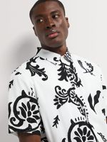 Elevate your wardrobe with our Markham Printed Viscose Bandana Shirt. Made in South Africa, this relaxed fit shirt in white and black features a soft viscose fabrication for ultimate comfort. Easy to care for with cool wash. Warm iron. Dry cleanable.