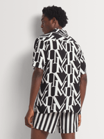 Elevate your wardrobe with our Markham Printed Viscose Monogram Black Shirt. Made in South Africa, this regular fit shirt features a cool wash, warm ironing, and is dry cleanable. Crafted from high-quality viscose, this locally made shirt is a stylish addition to any outfit.