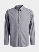 Elevate your casual style with our Markham Slim Chambray Grey Shirt. Crafted from a cool poly-cotton blend, this shirt features a modern slim fit for a sharp look. Easy to care for with cool wash, warm iron, or dry clean options. Locally made with quality in mind.