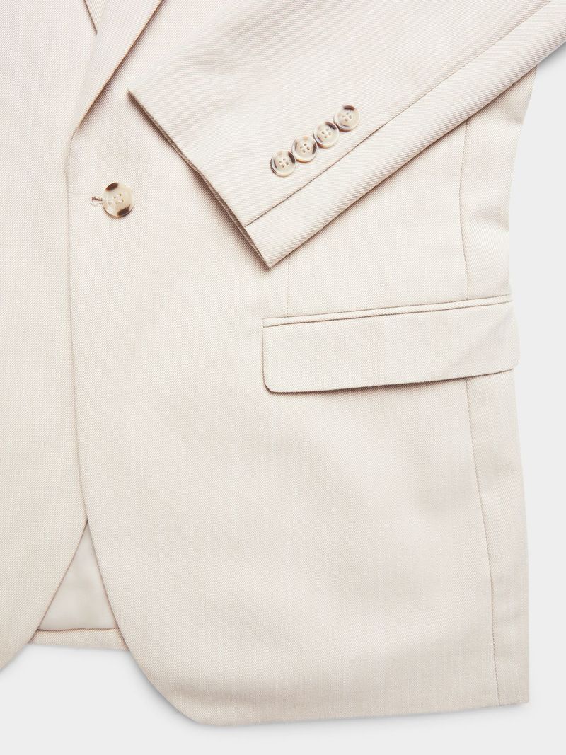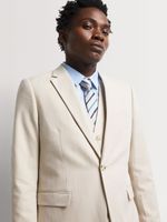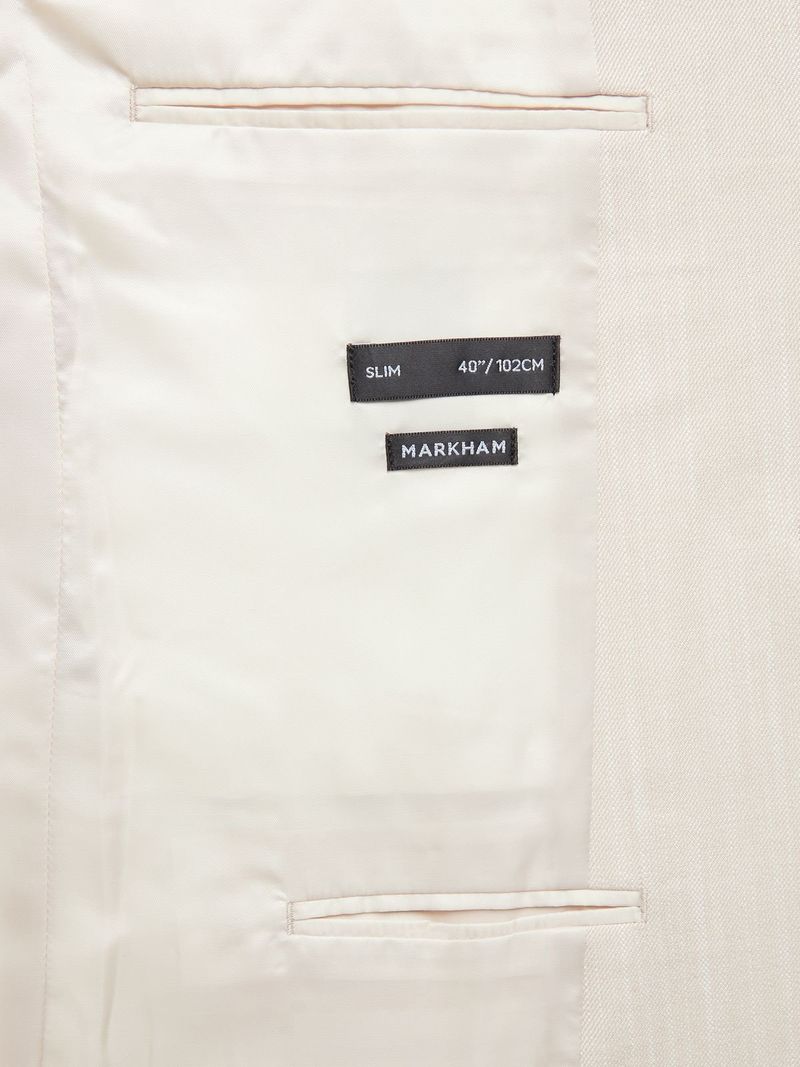 Upgrade your wardrobe with the Markham slim fit linen stone suit jacket. Made from a durable poly-cotton blend, this jacket features a sleek slim fit design. Easy to care for with cool iron and dry clean only instructions. Elevate your style with this versatile piece.