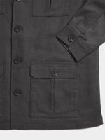 Elevate your style with our Markham linen utility jacket. Designed for comfort and functionality with a slim fit silhouette. Crafted with PV stretch fabric for ease of movement. Features include cool iron care instructions and dry clean only. Perfect for any occasion.