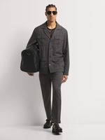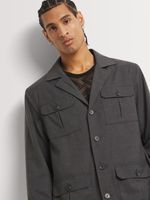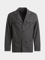 Elevate your style with our Markham linen utility jacket. Designed for comfort and functionality with a slim fit silhouette. Crafted with PV stretch fabric for ease of movement. Features include cool iron care instructions and dry clean only. Perfect for any occasion.