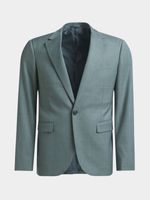Elevate your style with our Markham slim plain suit jacket in a refreshing seafoam green color. Made with PV stretch fabric for comfort and fitted with a slim fit design. Perfect for any occasion, pair it effortlessly with your favorite pieces. Designed for easy care, gently iron or dry clean.