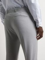 Introducing the Men's Markham Slim Tapered Micro Houndstooth Grey Trouser. Made with PV Stretch fabric for a comfortable fit. Features a cool iron and dry clean only wash care. This trouser is perfect for any occasion, with its slim tapered fit. It's returnable and suitable for men. Not for sport, fine jewelry, furniture, or kids. Choose style and sophistication with this smart trouser option.