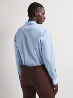 Elevate your style with this smart slim fit blue shirt from Markham. Perfect for work or weekends, this collared button-down shirt is versatile and sure to impress. Crafted from a comfortable poly-cotton blend, it's easy to care for and looks great paired with trousers or denim. Say hello to your new go-to wardrobe essential.