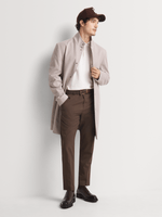 Upgrade your wardrobe with these stylish brown trousers. Crafted with PV stretch fabric, they feature a smart slim tapered fit. Perfect for any occasion, these trousers offer a houndstooth pattern for a touch of sophistication. Care instructions include cool ironing and dry cleaning only. Made with quality in South Africa.