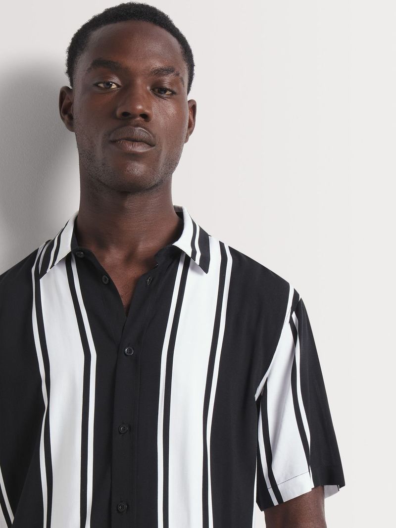 Meet your new favorite casual shirt – the Markham Stripe Viscose Shirt in Black/White. Made with soft and breathable viscose, it features a relaxed fit for ultimate comfort. Easy to care for with cool wash instructions. Locally made in South Africa. Feel good and look good in this versatile piece.
