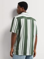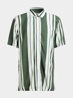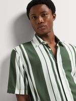 Elevate your style with our Markham Stripe Viscose Shirt in Fatigue/White. Made from luxurious viscose fabric for a relaxed fit. Easy care instructions: cool wash, warm iron, dry cleanable. Locally made in South Africa. Perfect for any casual occasion.