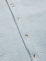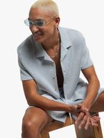 Featuring a navy seersucker fabric and button up design you can layer this shirt with all yo szn favs & icy accessory pieces. Copping this bad boy is a total no brainer!