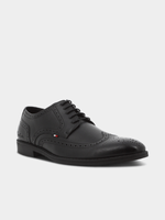 Black formal lace up with brogue detail .