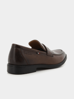Tan Formal Slip On in brush of lather look PU .Step in style with Pierre Cardin . Perfect for any occasion.