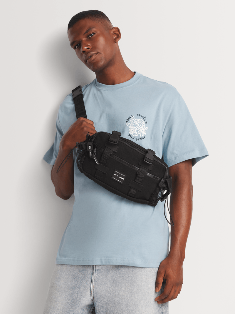 Upgrade your style with the Relay Jeans Canvas Crossbody Bag in classic black. Made from durable canvas, this bag is perfect for everyday use. Features include an adjustable strap and multiple pockets for easy organization. Hand washable and easy to care for. Designed for reliability and comfort.