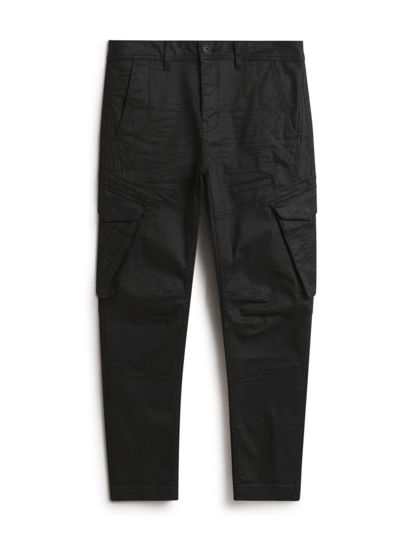 Elevate your style with these sleek, black denim jeans. The tapered fit offers a modern look, while the utility coating adds an edgy touch. Made from high-quality denim, these jeans are easy to care for and versatile for any occasion.